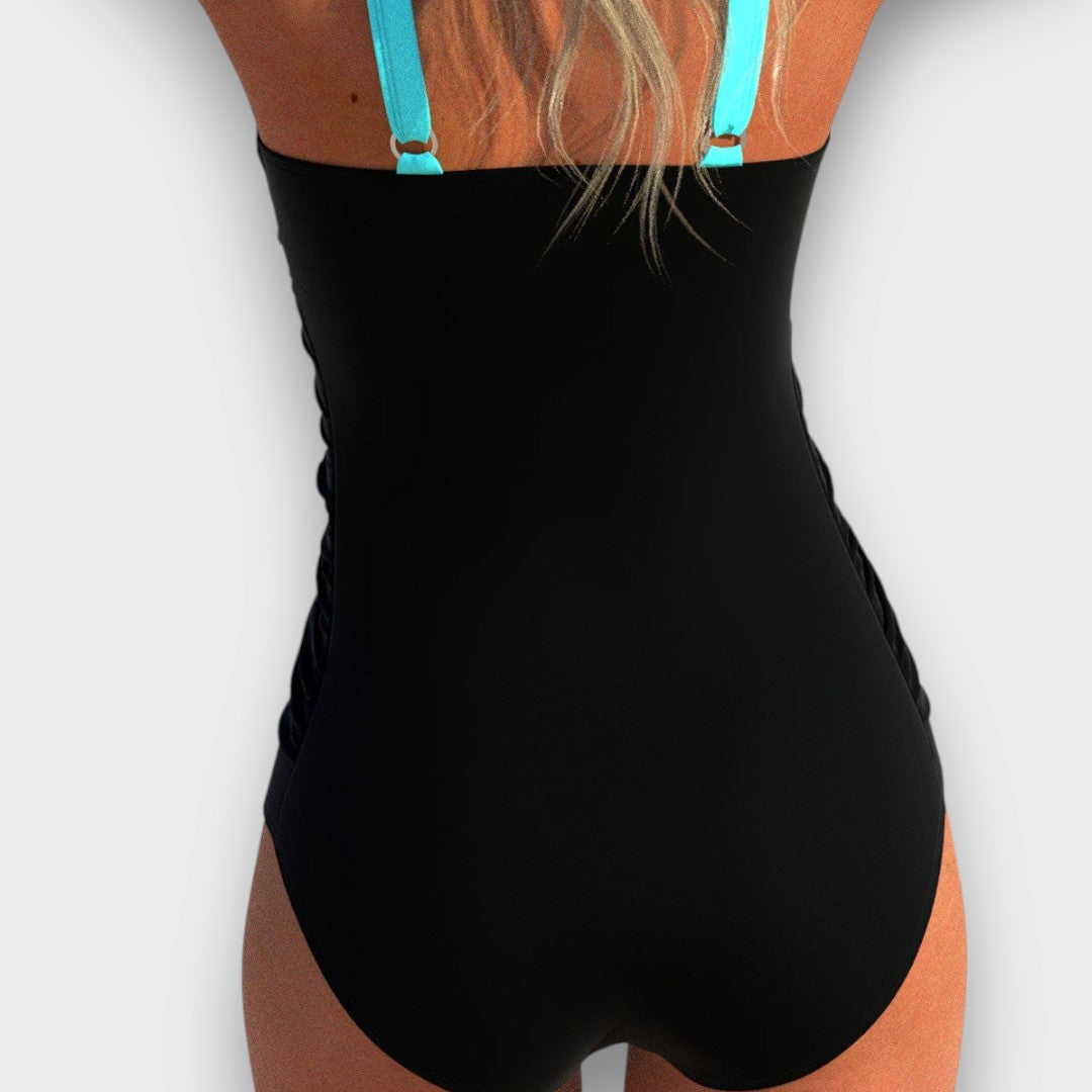Astrid – Farbintensiver Badeanzug mit überkreuztem Vorderteil