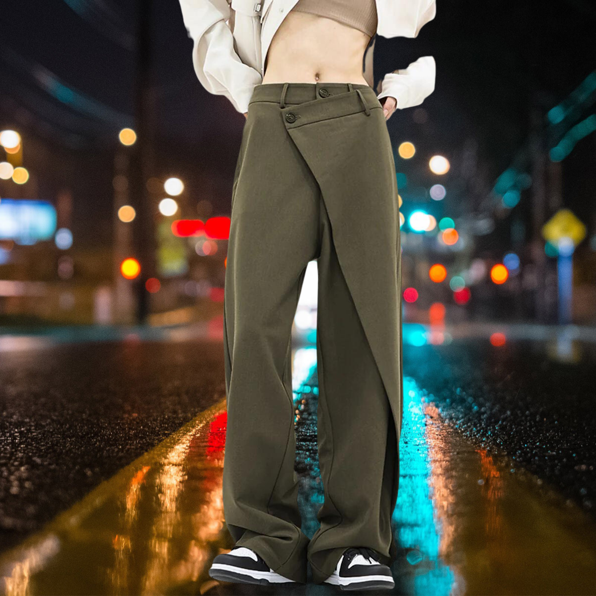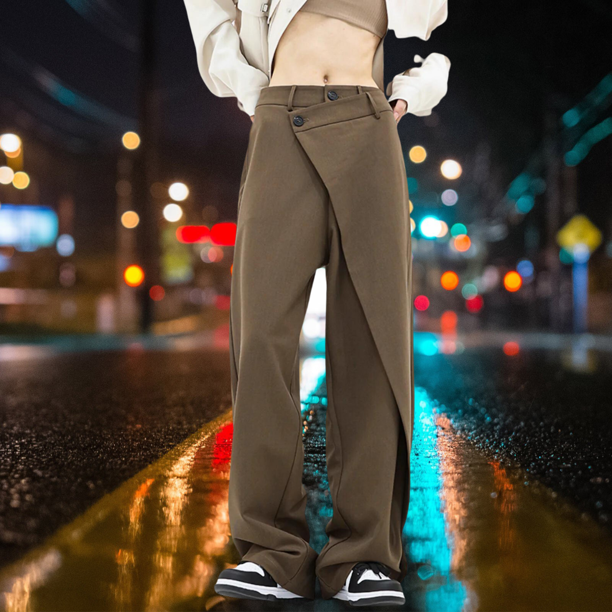Avelena | Asymmetrische Layer-Knopf-Kleid-Hose mit Weitem Bein