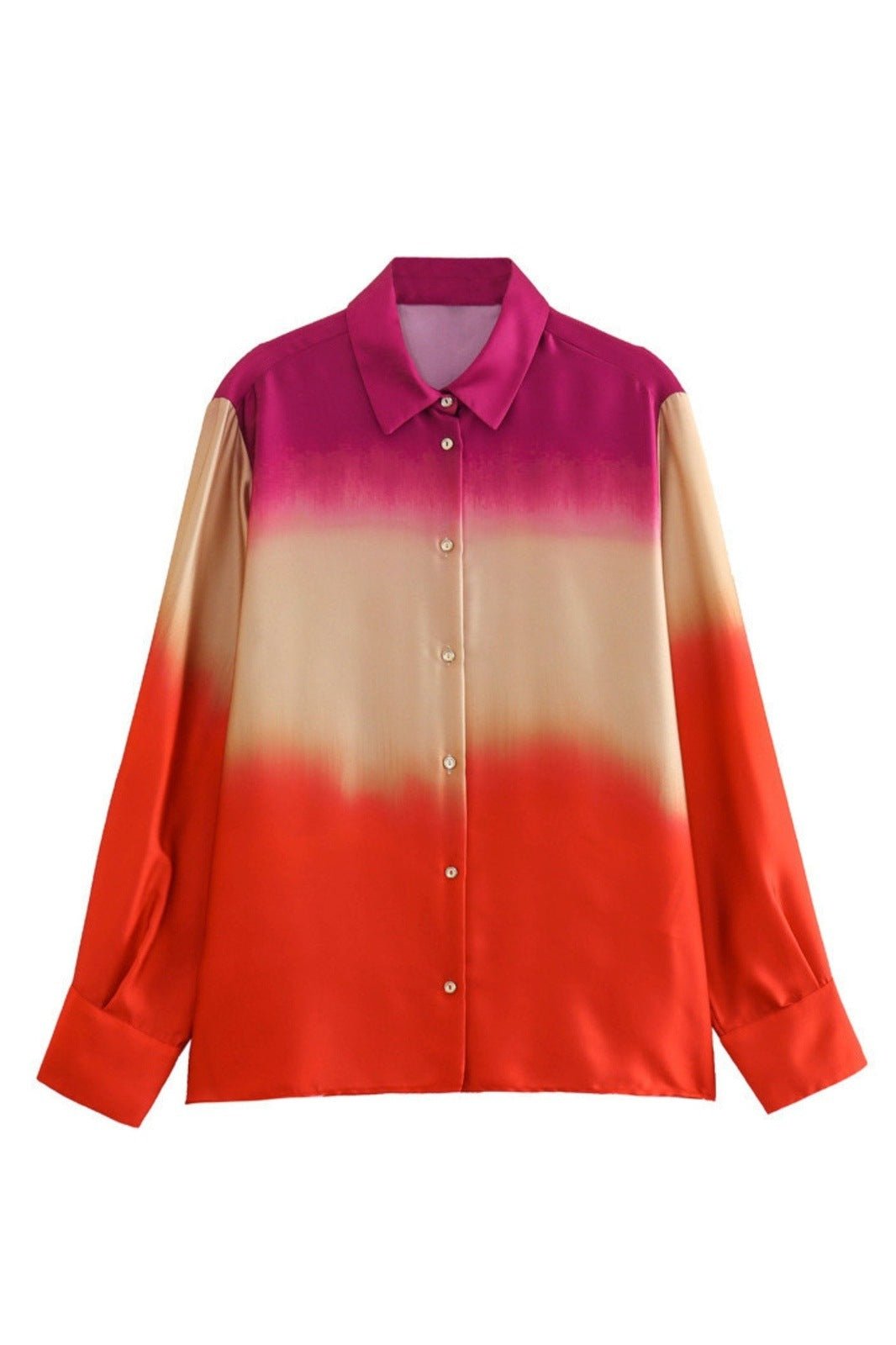 - Farbverlauf-Design: Das lebendige Farbverlauf-Design schafft einen beeindruckenden visuellen Eindruck, der die Pracht eines Sonnenuntergangs einfängt und dem Outfit eine kreative Note verleiht.