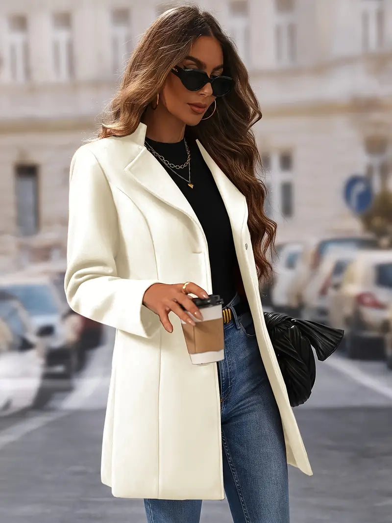 Avelena | Eleganter Damenmantel mit Langen Ärmeln Schick Einfarbig Colo