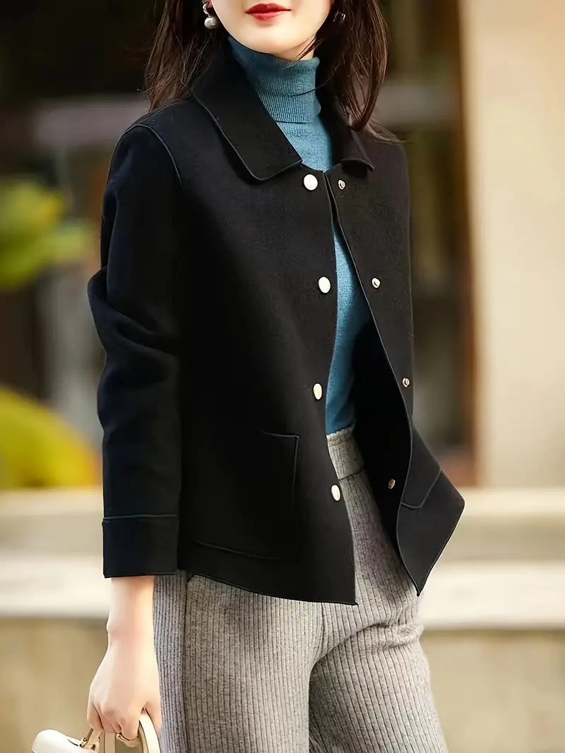 Avelena | Eleganter Einfarbiger Wollmischmantel für Frauen mit Knopfleiste