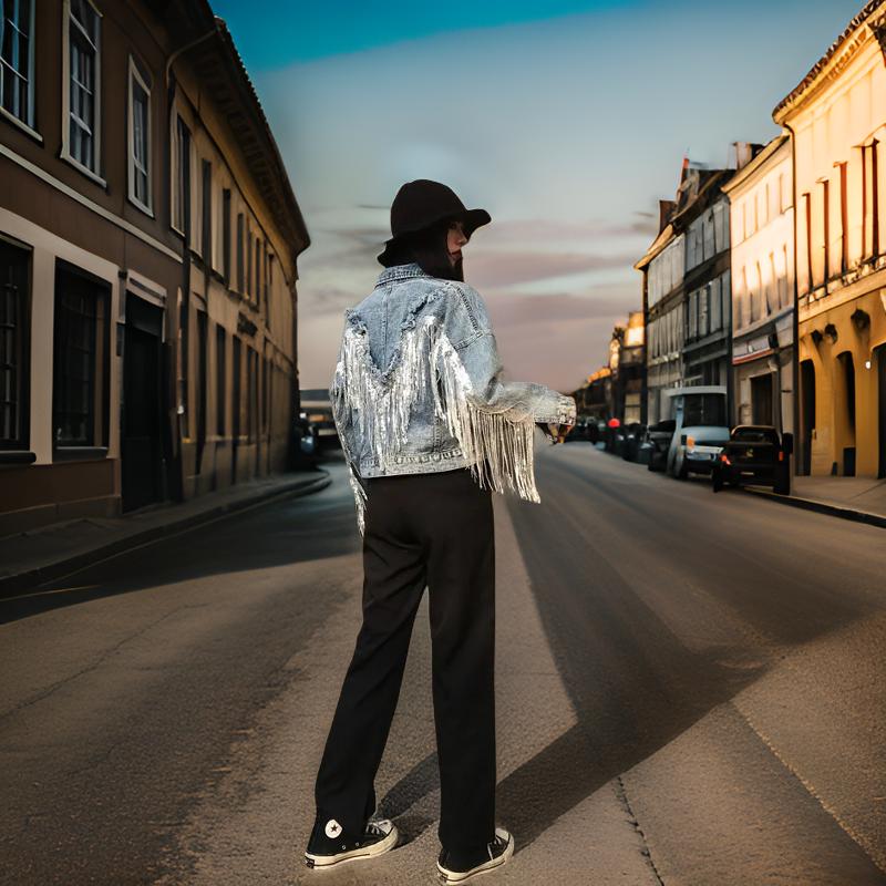 - Modischer Look: Die Fransen fügen dem klassischen Denim-Design eine besondere, lebendige Note hinzu.