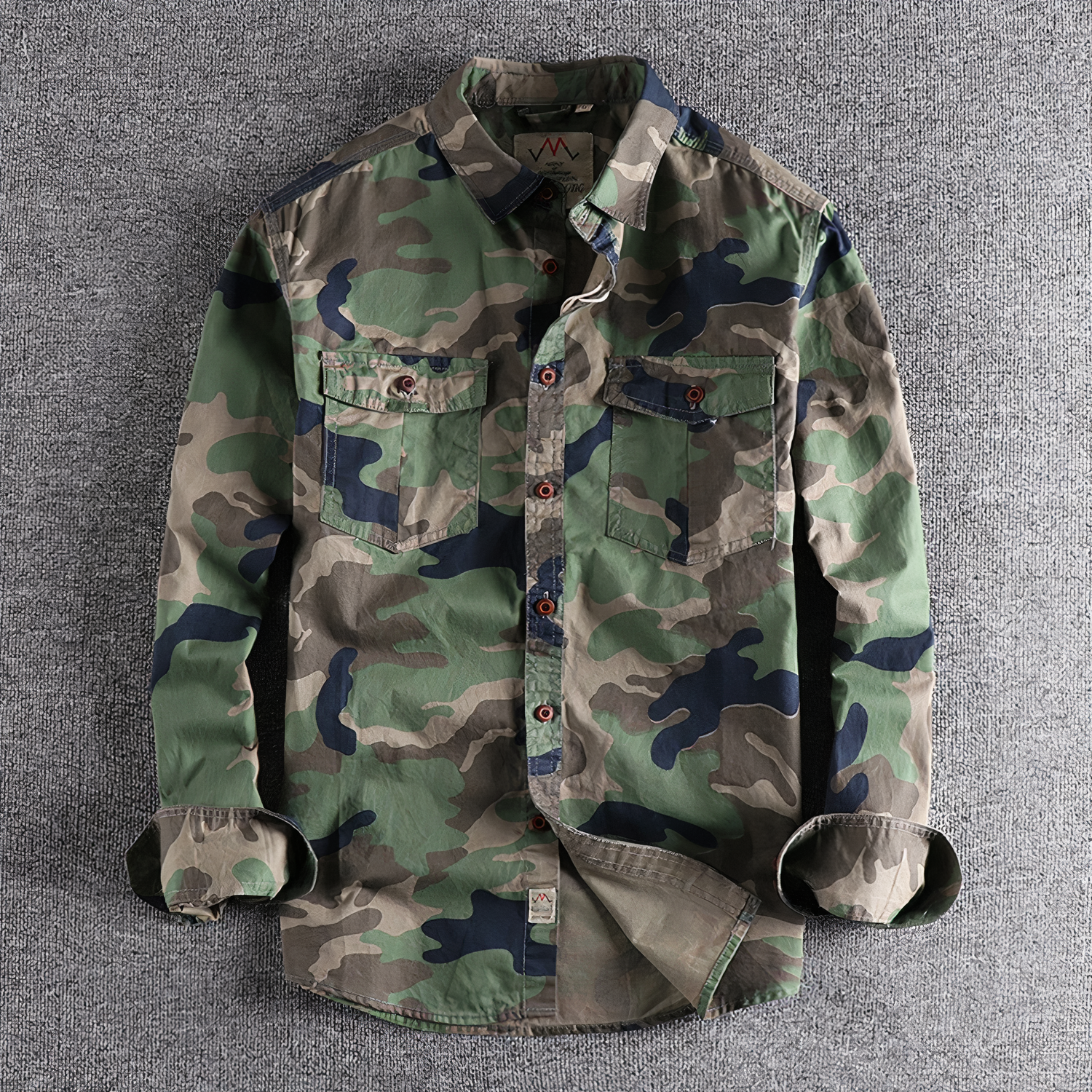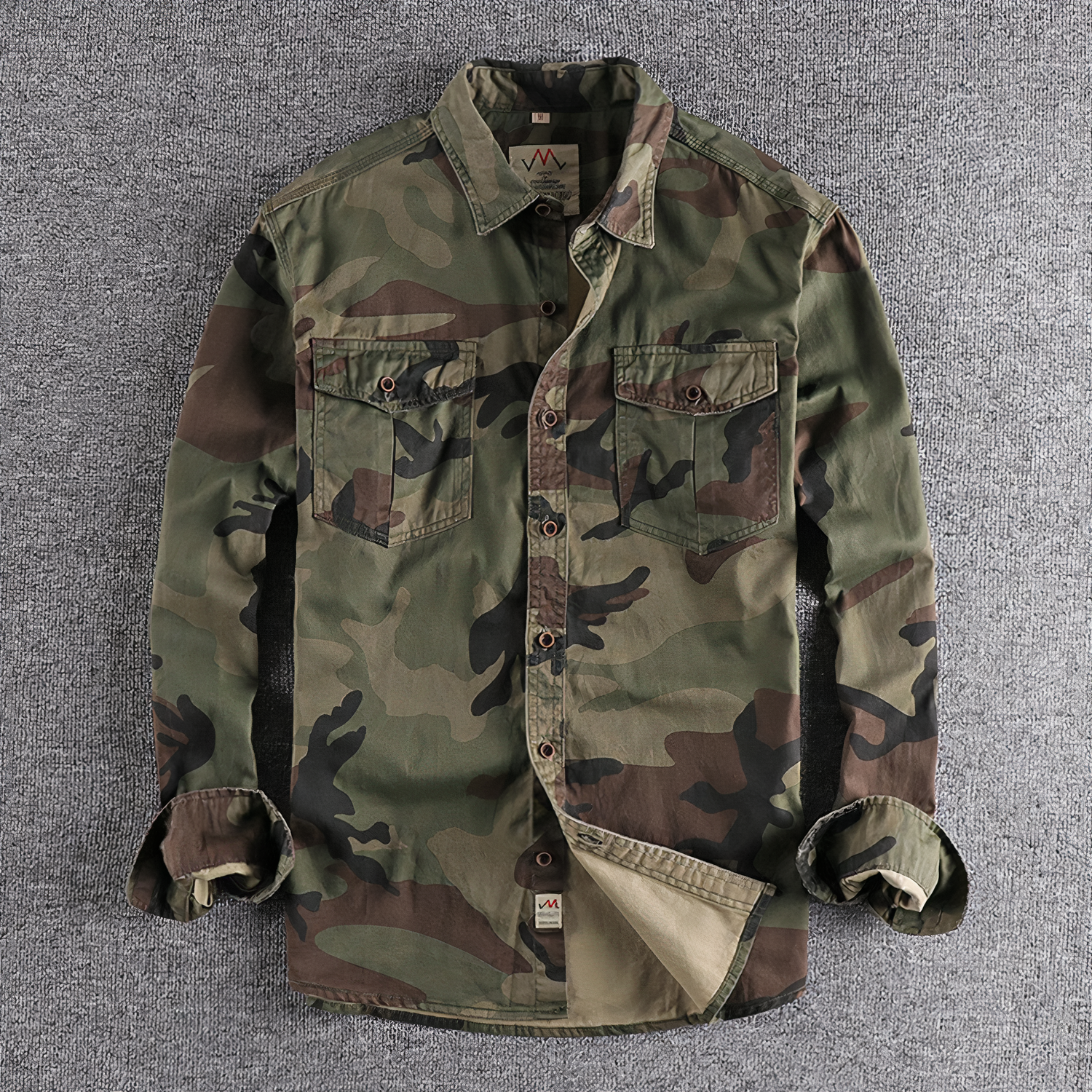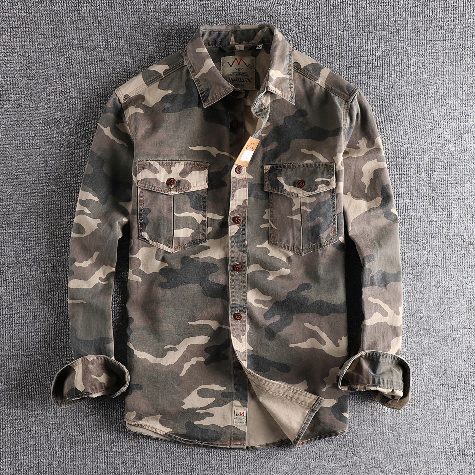 Eigenschaften: Dieses Hemd verfügt über ein Camouflage-Design, eine lockere Silhouette, einen Reverskragen, aufgesetzte Taschen und lange Ärmel. Dank der bügelfreien Verarbeitung ist die Pflege unkompliziert.