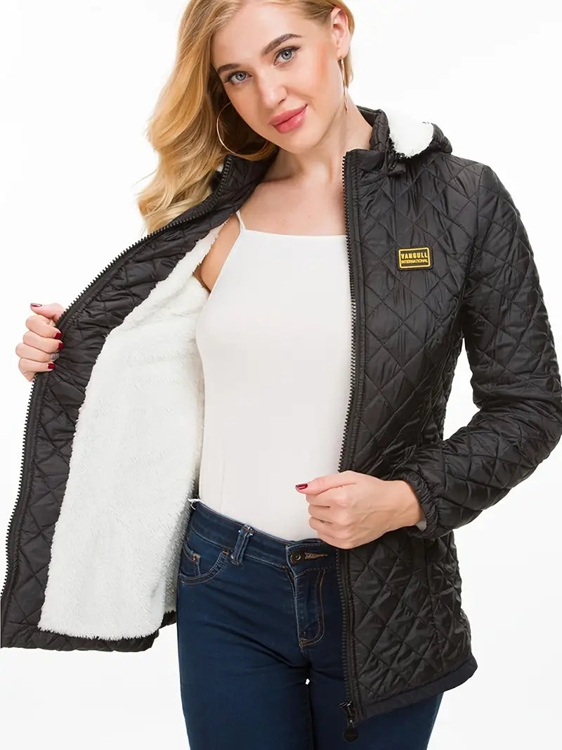 Deshalb sollte der "Avelena Luxuriöse gesteppte Kapuzenmantel aus Kunstpelz" Teil Ihrer Garderobe sein: