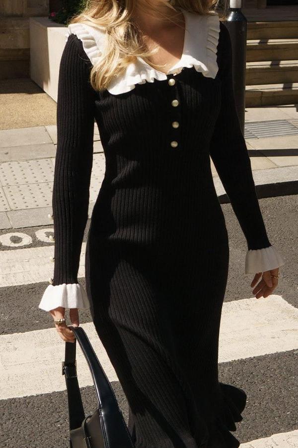 Avelena | Rüschen-Perlen-Midi-Strickkleid