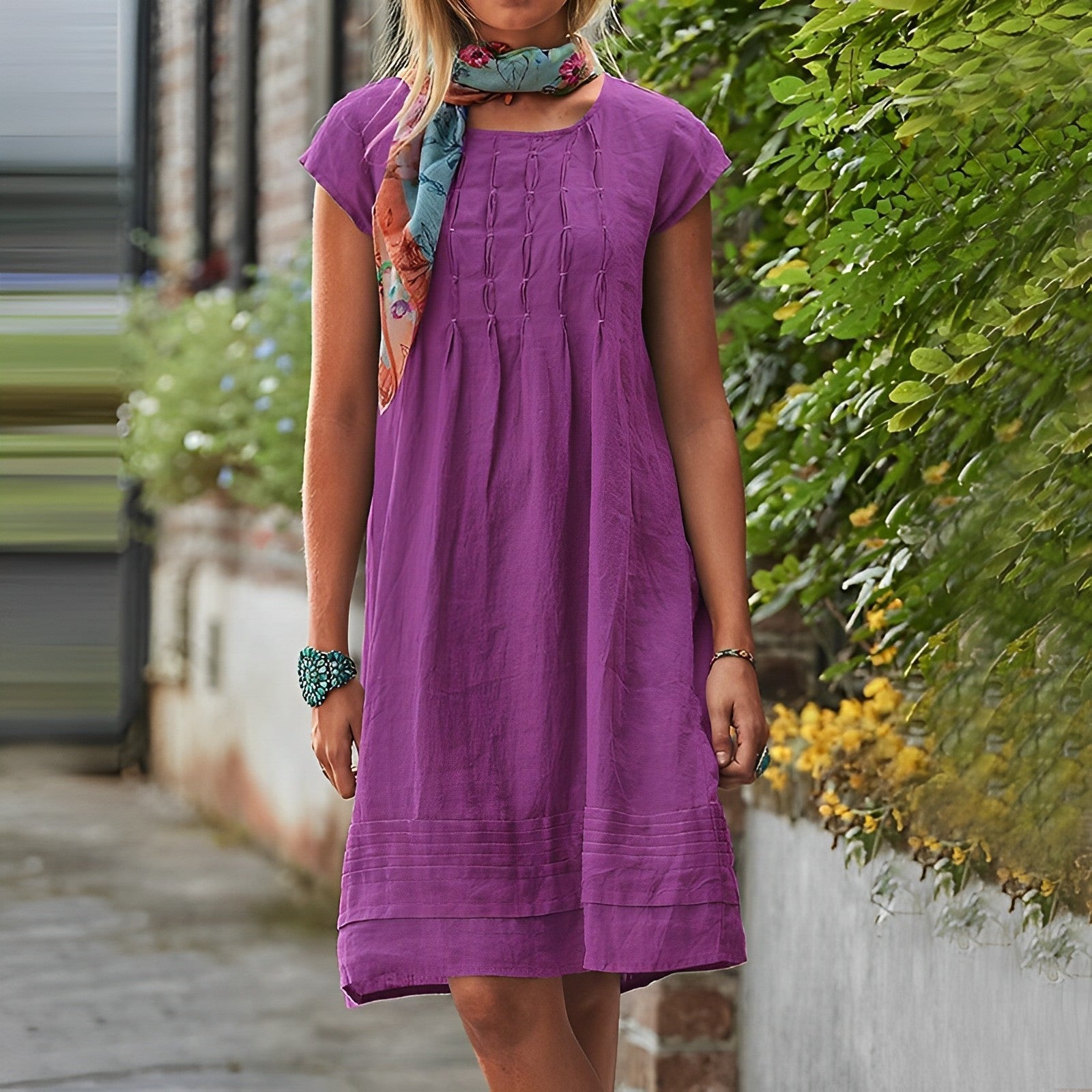 Avelena | Schönes Schlichtes Kleid mit Kurzen Ärmeln