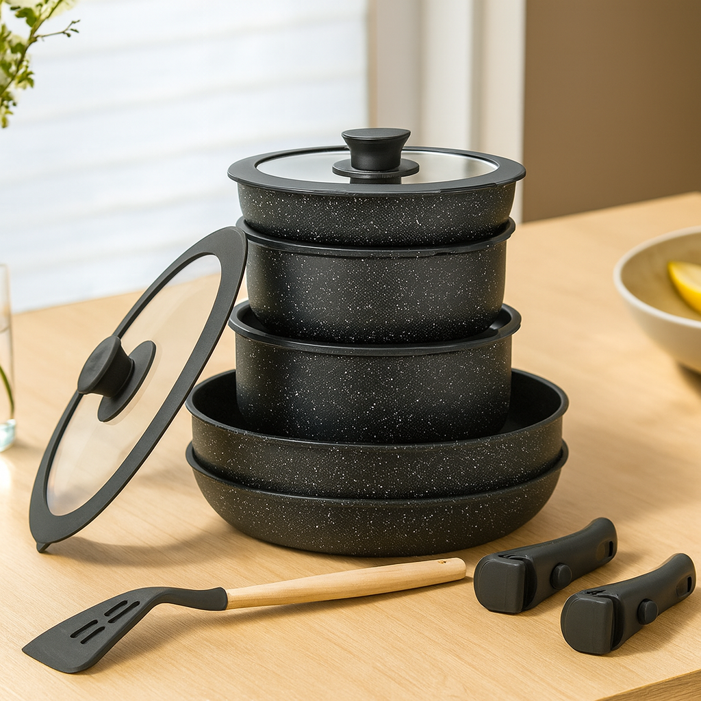 • 5 unverzichtbare Teile – Enthält Töpfe, Pfannen und passende Deckel für den vielseitigen Einsatz im Alltag.