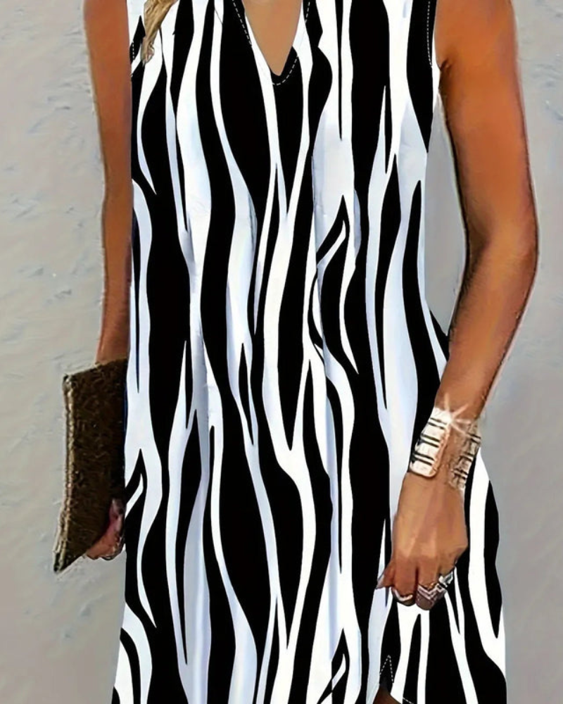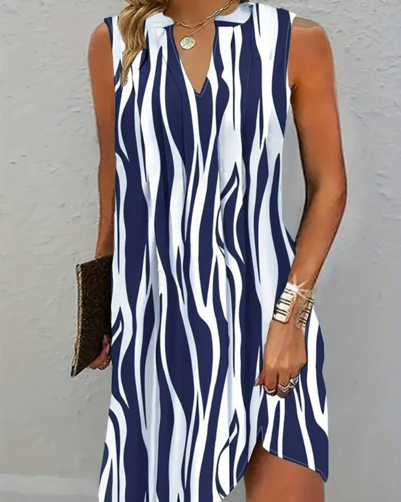 Dieses ärmellose Kleid mit Streifen ist die ideale Wahl für warme Sommertage. Das klassische Design kombiniert mit einem luftigen Schnitt sorgt für eine mühelose Eleganz, die sich perfekt für verschiedene Anlässe eignet. Ob beim Strandbesuch, einem Brunch mit Freunden oder einem entspannten Treffen – dieses Kleid ist vielseitig und stilvoll.