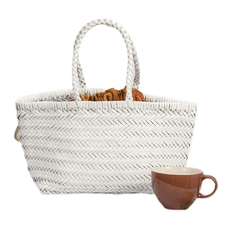 Hergestellt aus hochwertigem, veganem Leder mit traditioneller Flechtstruktur, vereint sie rustikale Ästhetik mit moderner Funktionalität.