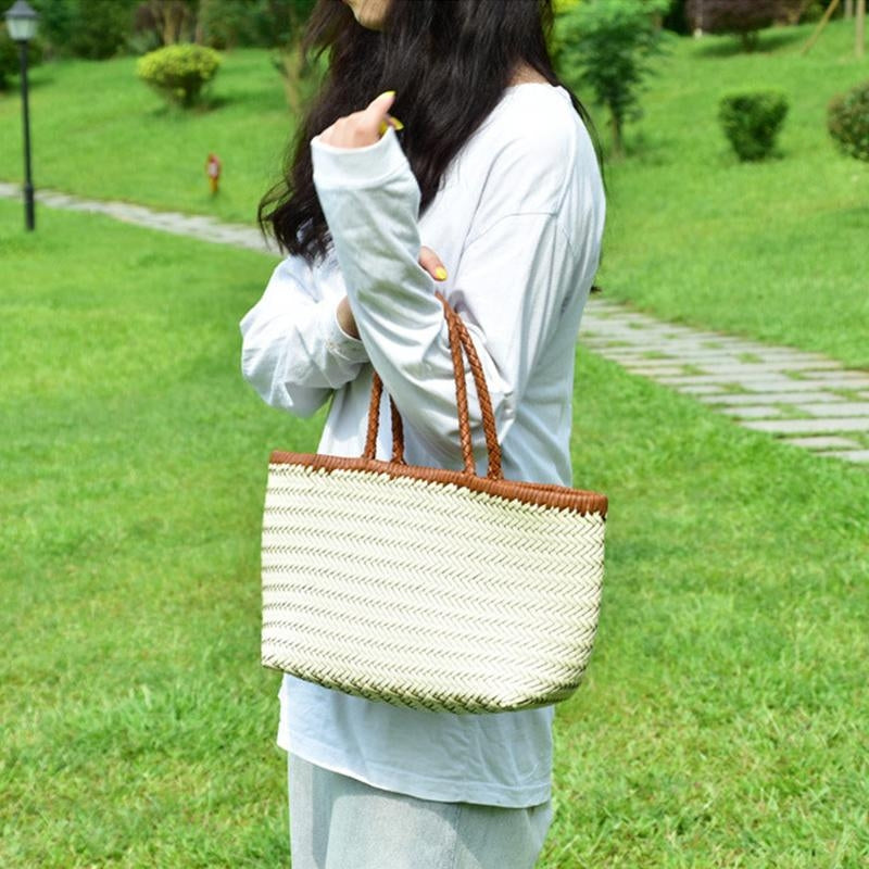Elna | Große handgeflochtene Tragetasche aus veganem Leder – Rustikaler Shopper