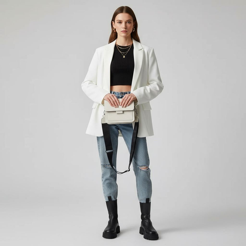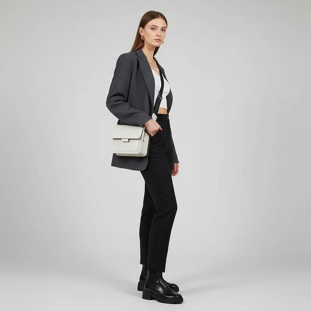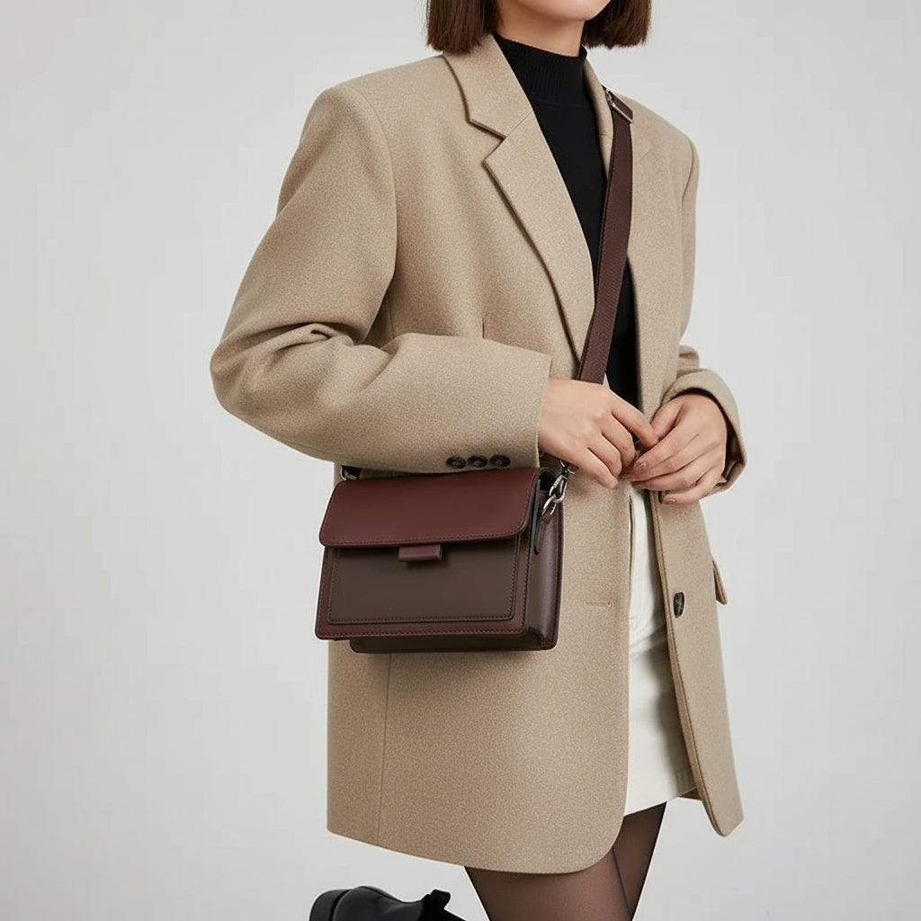 Minimalistisch und zeitlos – eine kompakte Crossbody-Bag, die Eleganz und Funktion vereint. Perfekt für Arbeit, Freizeit und Reisen; harmoniert mühelos mit Strick, Denim und cleanen, minimalistischen Looks.