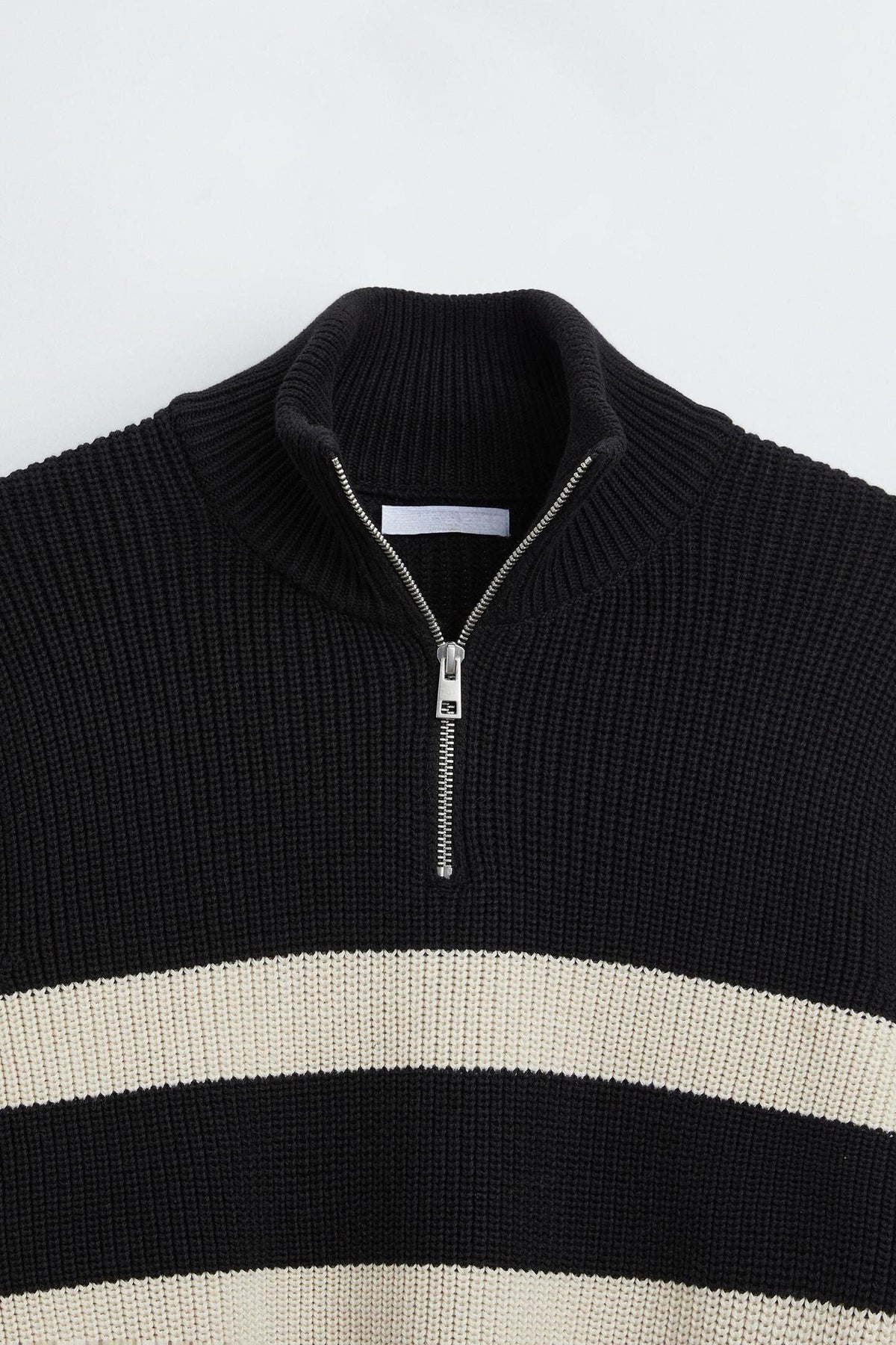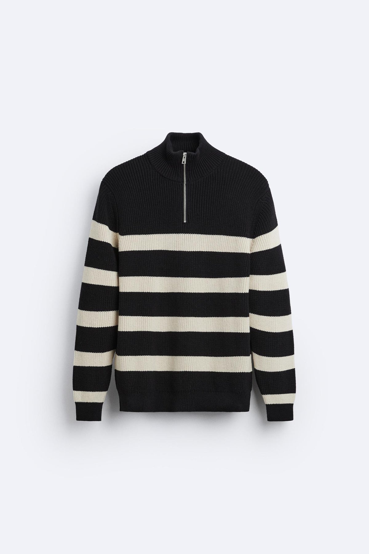 Gestreifter Strickpullover mit Reißverschlusskragen