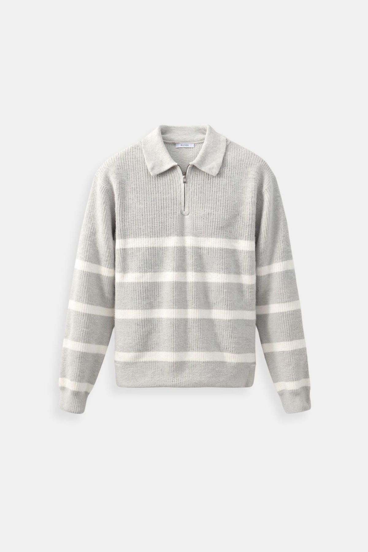 Gestreifter Strickpullover mit Reißverschlusskragen – Klassisch & Bequem