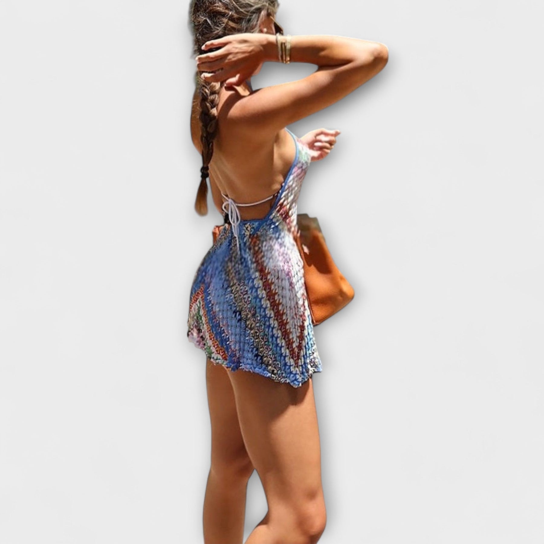 Der farbenfrohe Häkel-Look und der rückenfreie Schnitt schaffen einen femininen Sommer-Look mit Eyecatcher-Garantie.