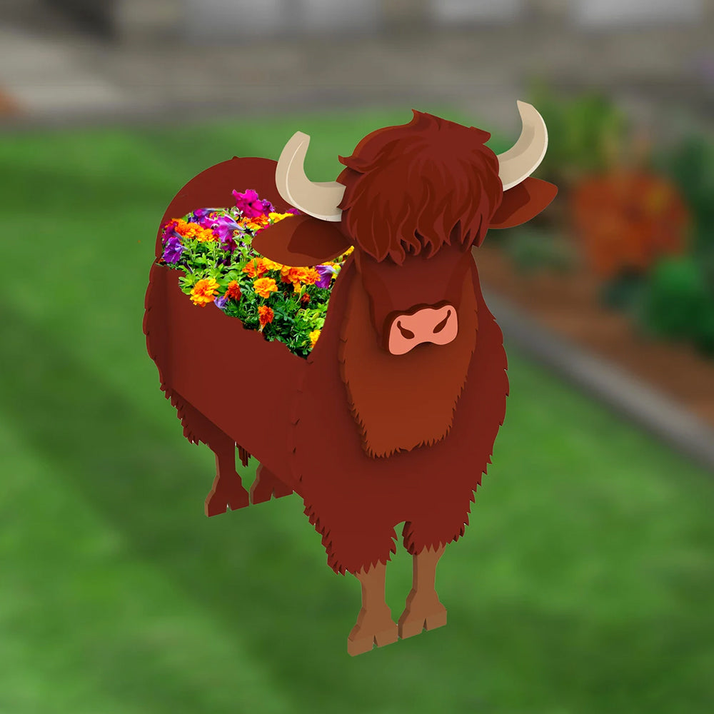 Hochlandkuh Blumenpflanzer