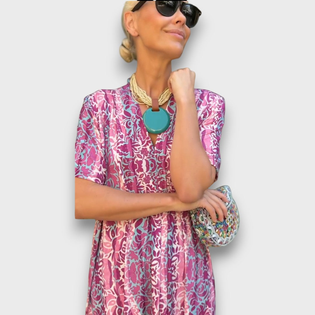 Ingrid ist das Kleid, das Sommermomente festhält – bunt, frei und voller guter Laune.