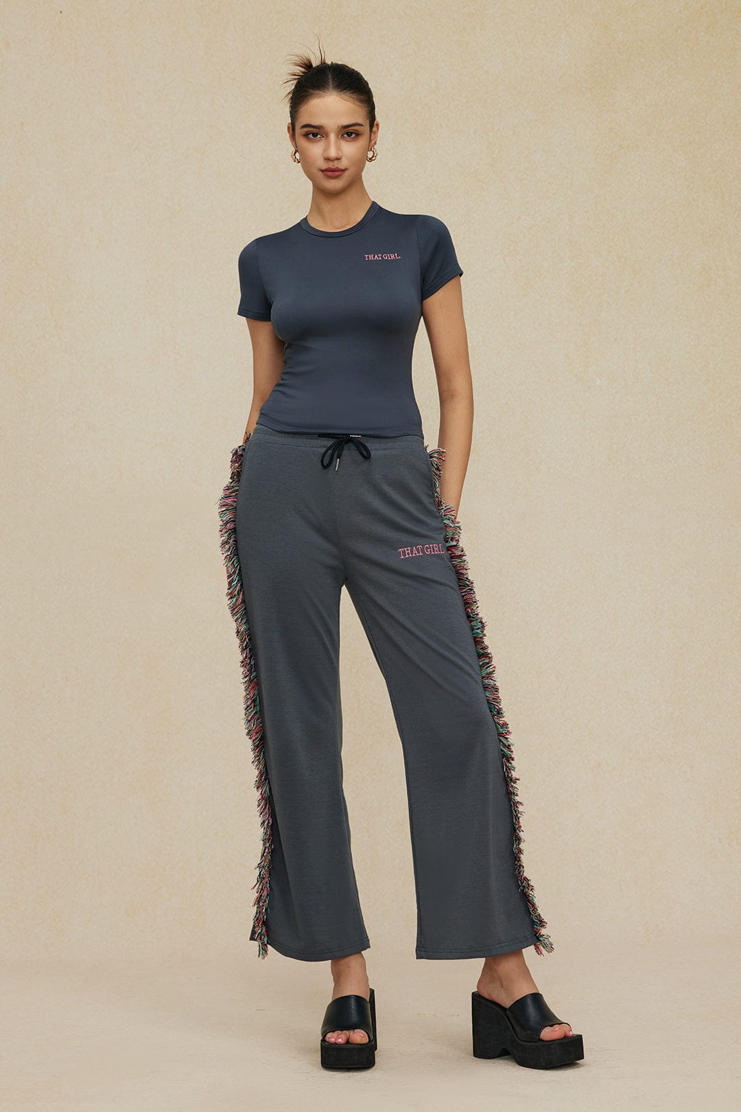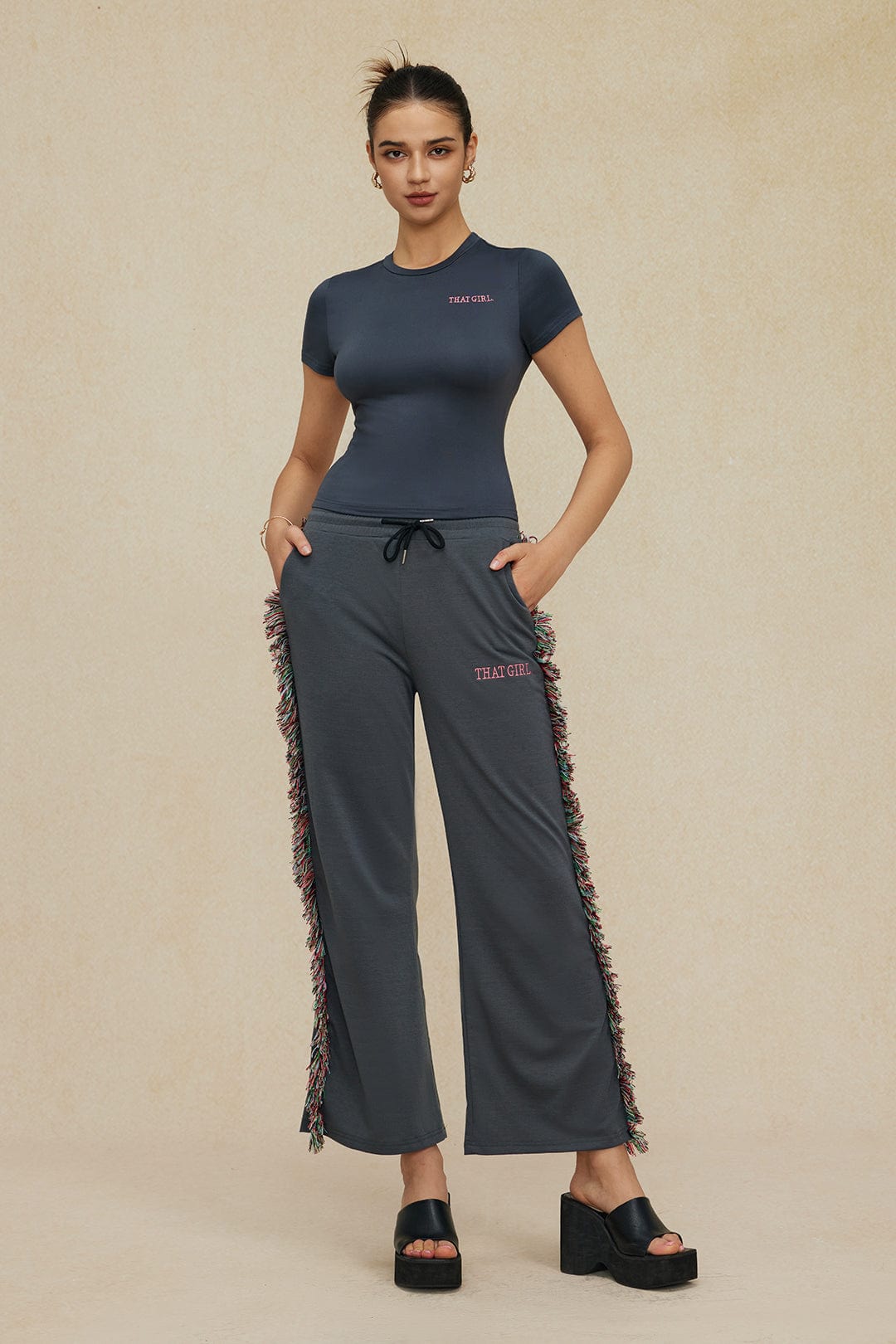 2. Weite Hose mit Fransen-Details – Setzt modische Akzente für einen einzigartigen Style.