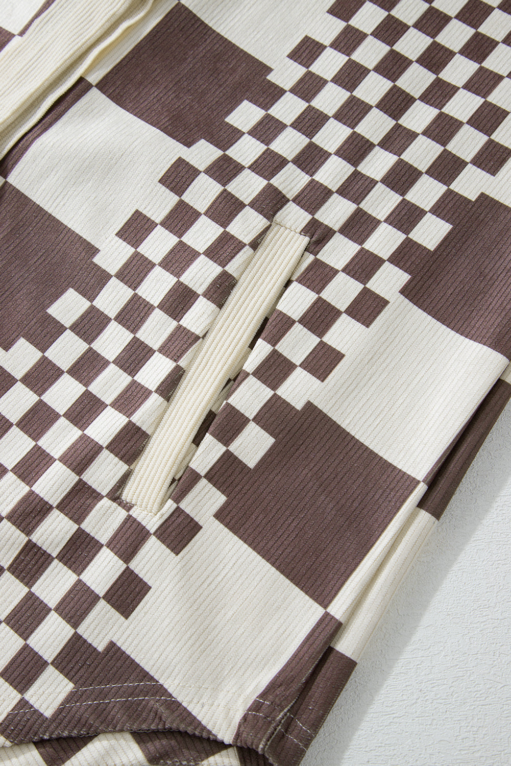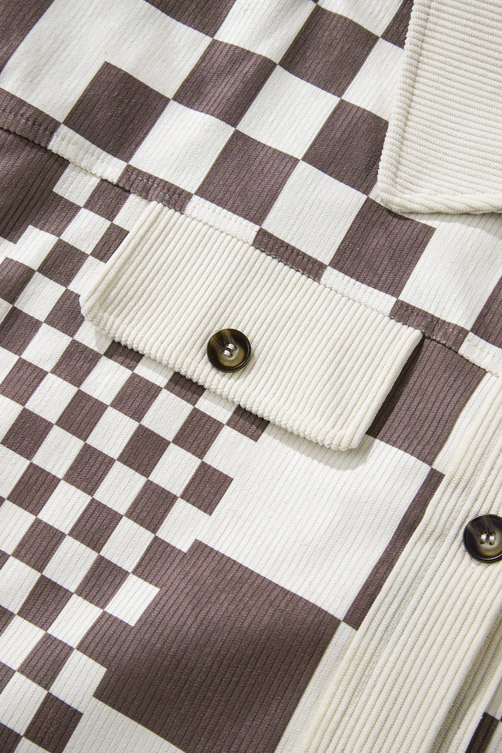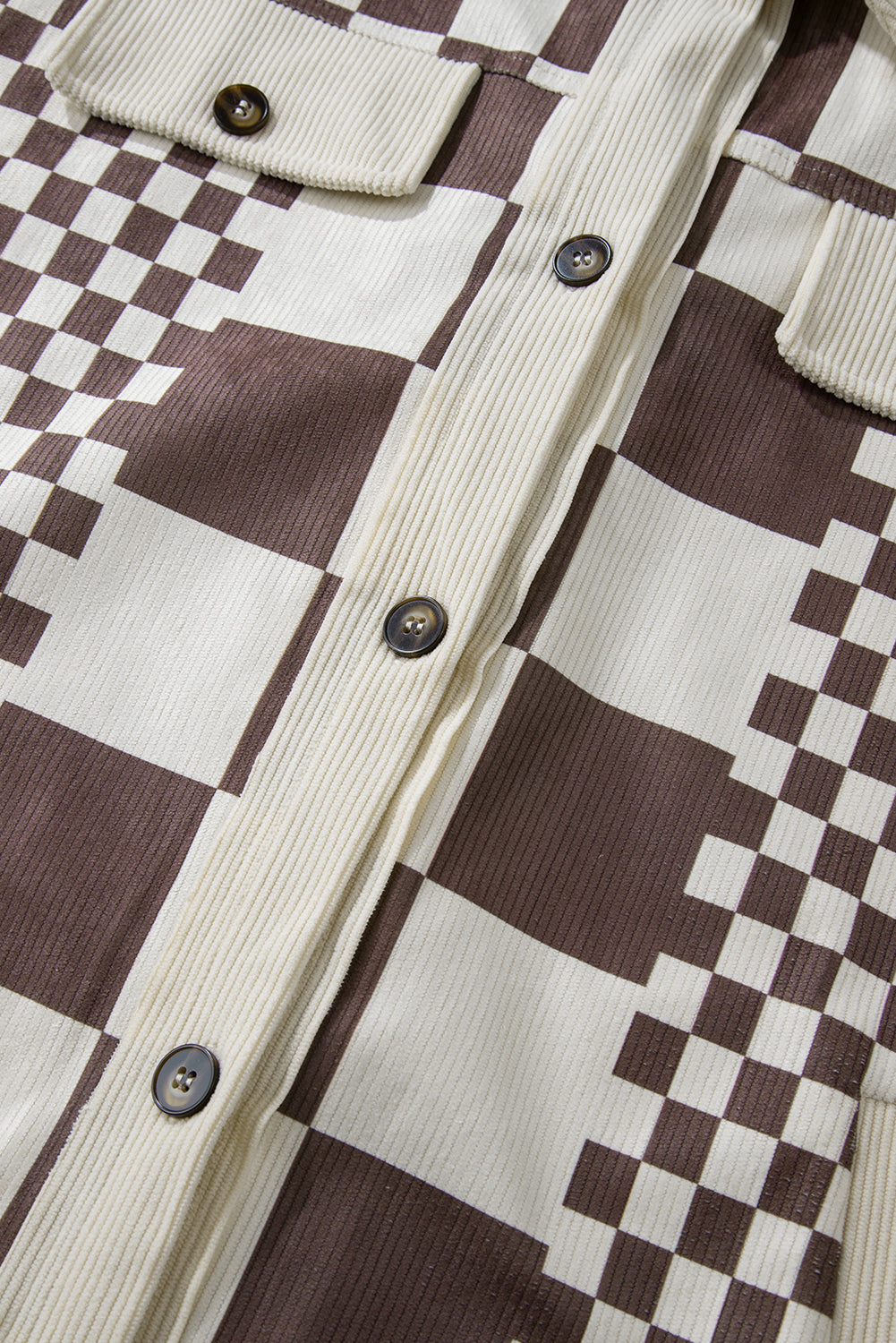 Karierte Oversized-Hemdjacke | Cord-Textur | Retro-Chic