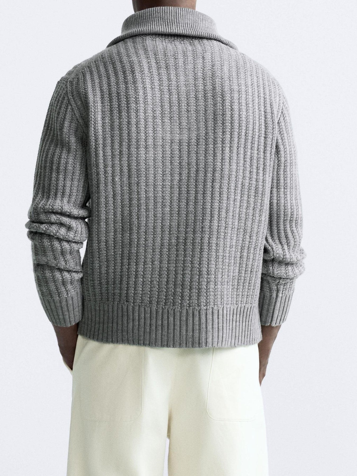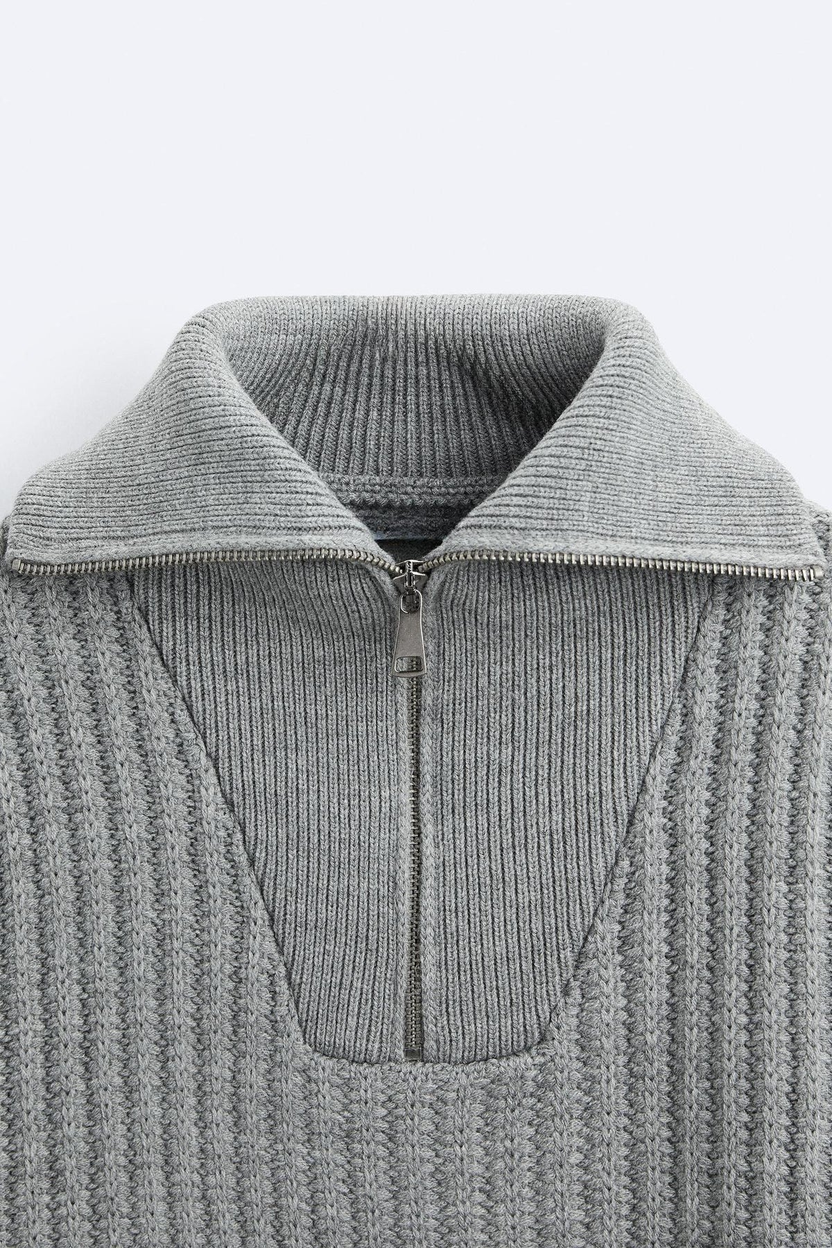 Klassischer Rippstrick-Pullover mit Reißverschluss
