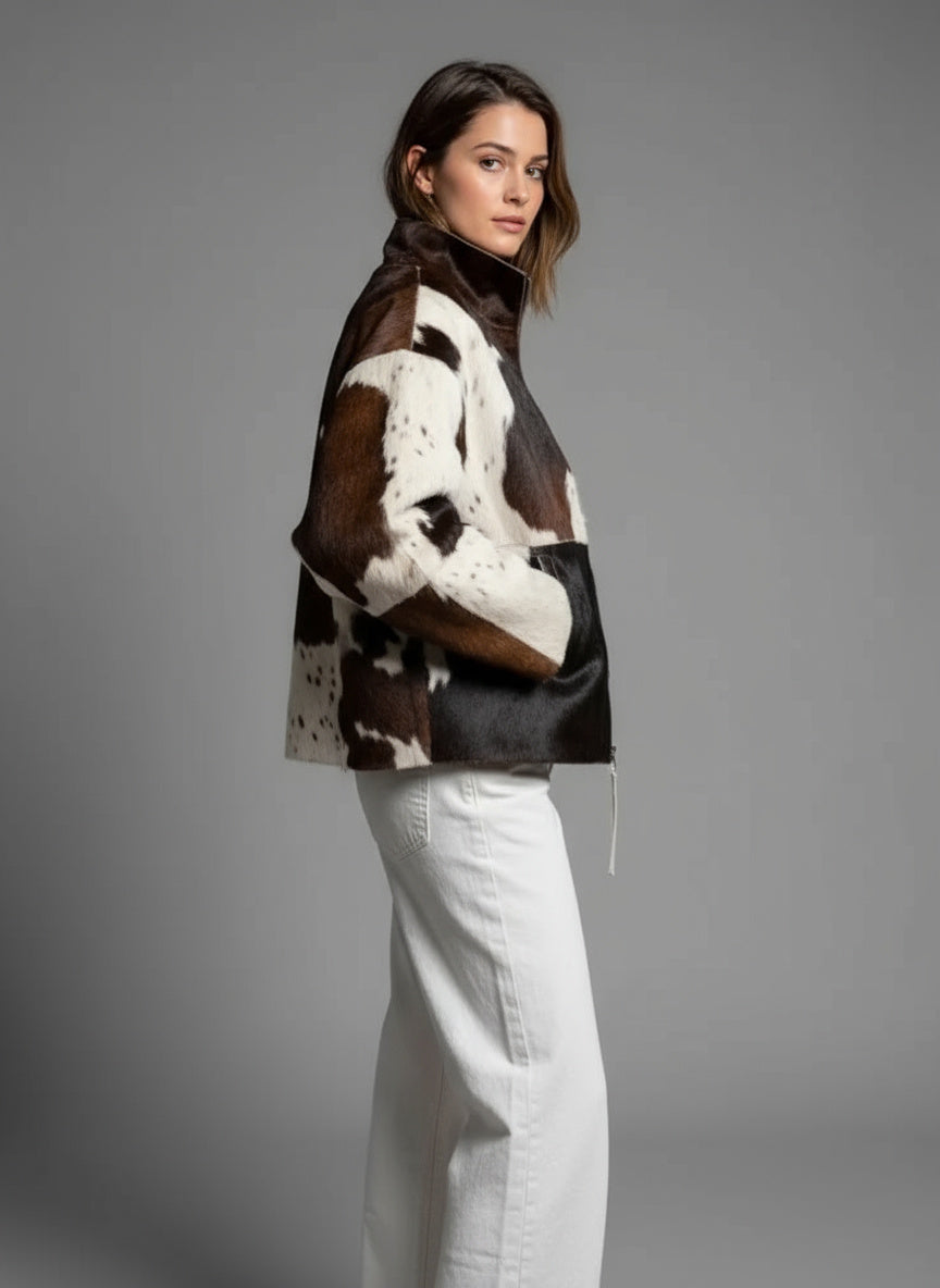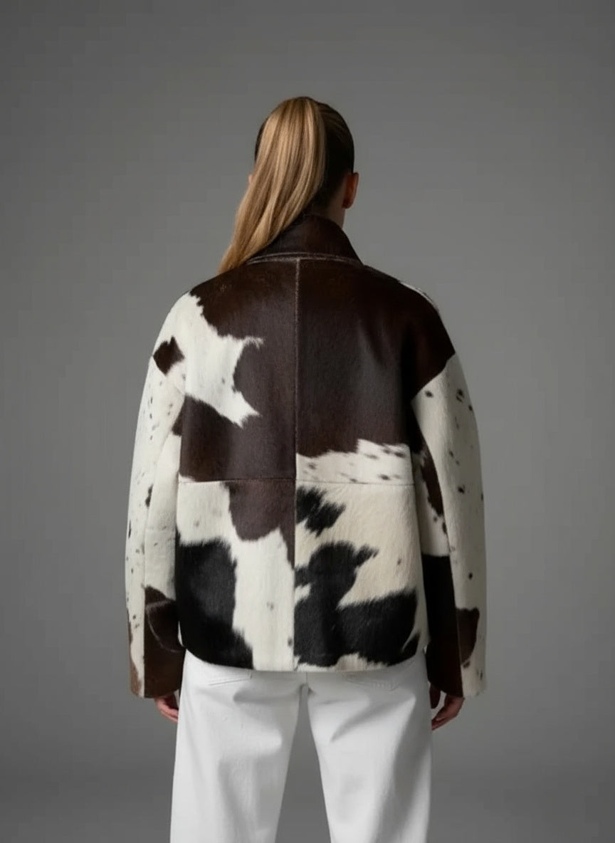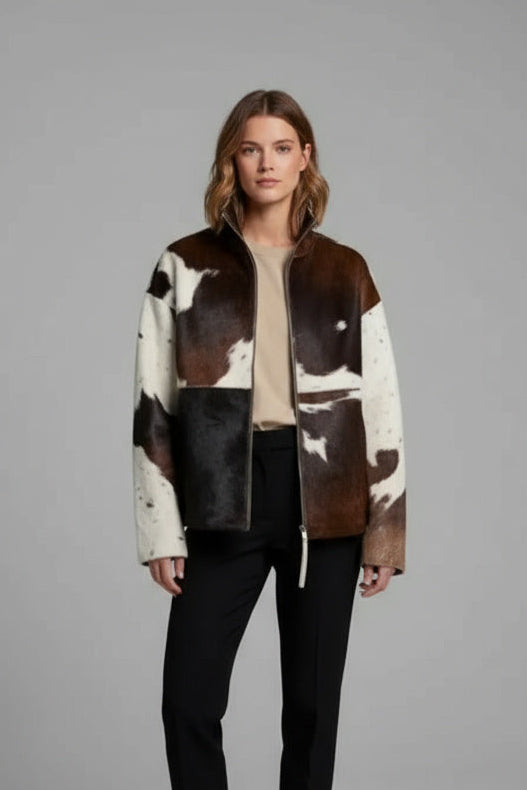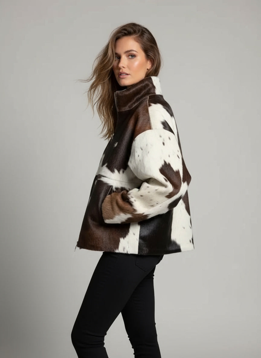 Diese kunstfelljacke in schwarz-weißem fellmuster ist ein echter hingucker für trendbewusste frauen. das auffällige tierfell-design kombiniert sich mit einem modernen, geraden schnitt und verleiht jedem outfit sofort eine ausdrucksstarke note. dank des weichen materials und des praktischen reißverschlusses wird die jacke schnell zum lieblingsstück für urbane streetstyles und elegante freizeitlooks.