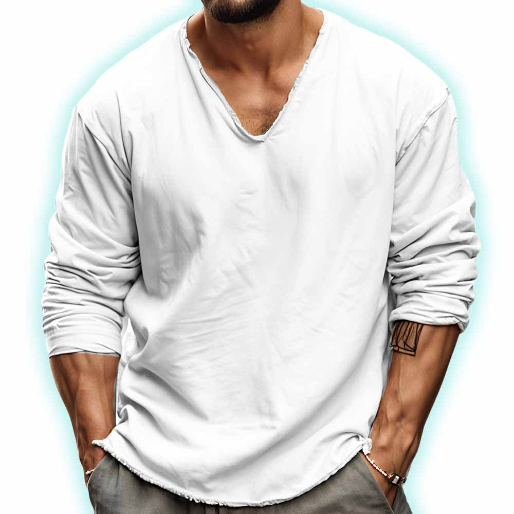 Robuster Look: Der V-Ausschnitt und das strapazierfähige Material sorgen für eine robuste Ästhetik, die einen robusten und doch lässigen Look vermittelt.