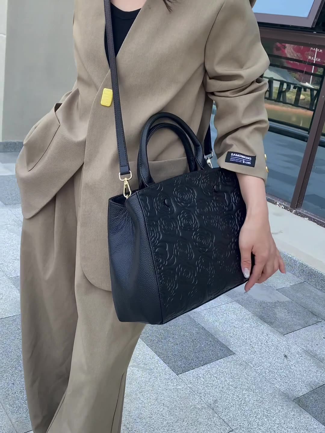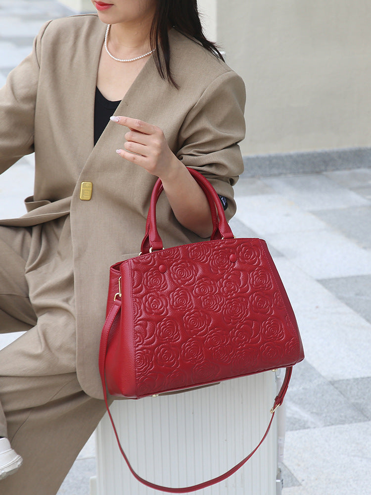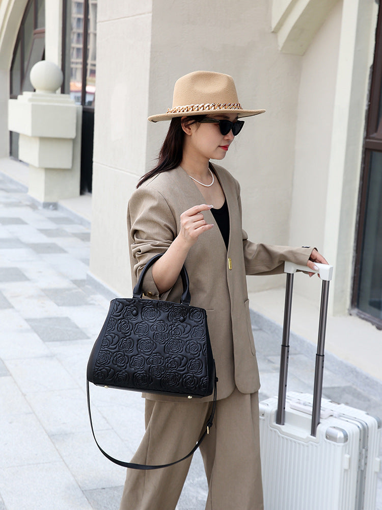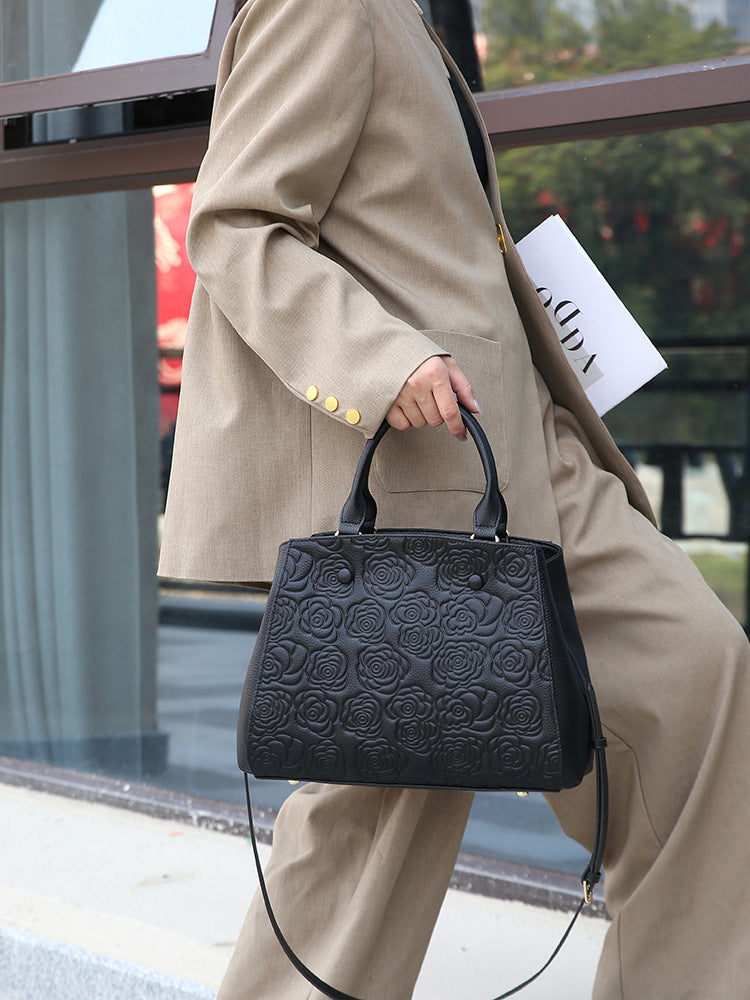 Elegante Handtasche mit floraler Prägung – eine Kombination aus klassischem Charme und moderner Raffinesse. Ideal für anspruchsvolle Looks und perfekt abgestimmt auf Business- und Freizeitoutfits.