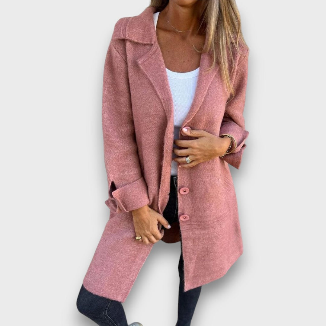 Ein Mantel, der dich sofort in eine entspannte Eleganz hüllt. Sein lockerer Schnitt und die weiche Textur sorgen für Komfort, während der klassische Reverskragen dem Design eine zeitlose Note verleiht. Ob in kräftigem Grün, zartem Rosa, dezentem Grau oder warmem Beige – dieser Mantel passt sich mühelos deinem Stil und Alltag an.