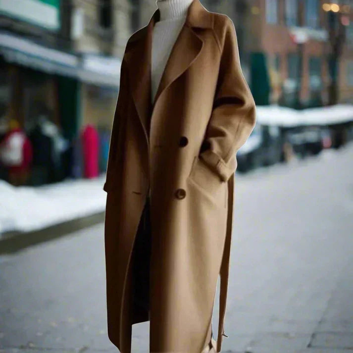 Marie ist ein klassischer langer Damenmantel, der zeitlose Eleganz und Wärme vereint. Mit seinem stilvollen Design ist dieser Mantel perfekt für einen schicken Look an kühleren Tagen.