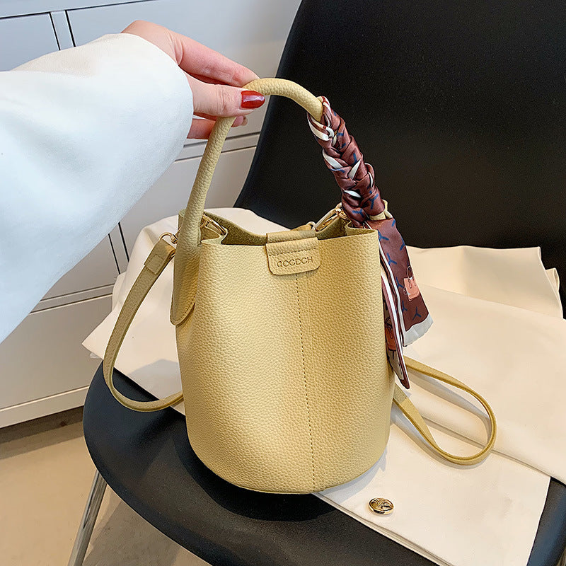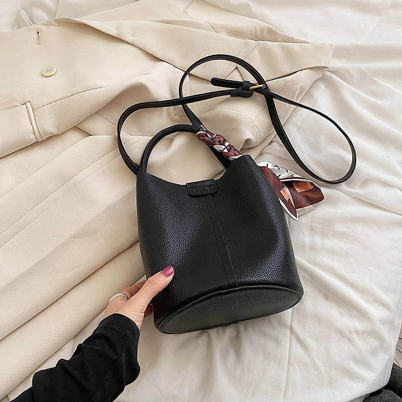 Moderne Bucket-Bag im minimalistischen Design – kompakt und dennoch geräumig. Das dekorative Seidentuch verleiht der Tasche eine feminine Note und macht sie zum idealen Begleiter für Alltag, City-Trips und elegante Anlässe.