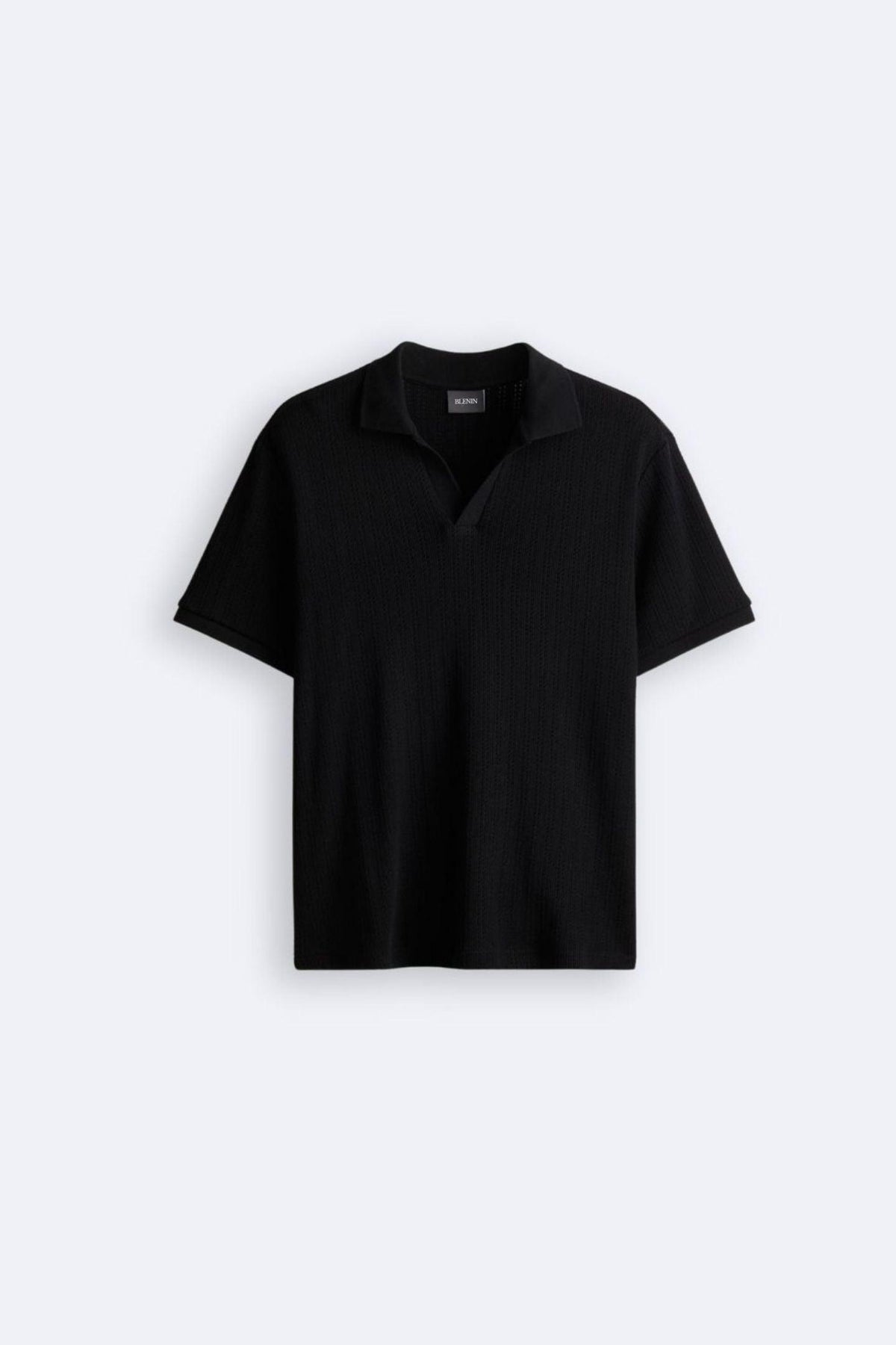 Dieses edle Strick-Poloshirt besticht durch sein minimalistisches Design und die feine Lochstruktur, die für eine optimale Belüftung sorgt. Der offene Kragen verleiht dem Shirt eine moderne, lässige Note und macht es perfekt für warme Tage oder entspannte Anlässe. Ein echtes Must-have für stilbewusste Männer!
