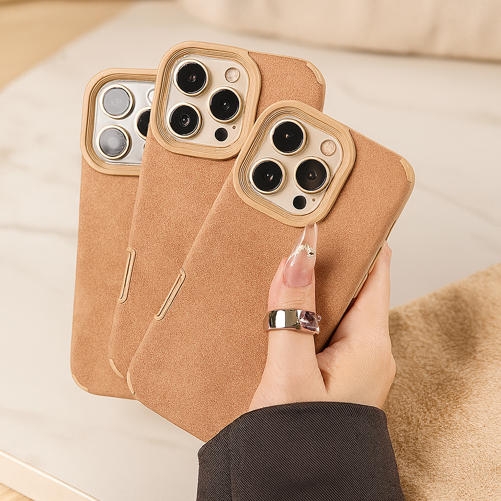 Universalhülle für iPhone 11–16 Pro Max – Stoßfestes, mattes PU-Leder mit weichem Lammvelourslederfutter